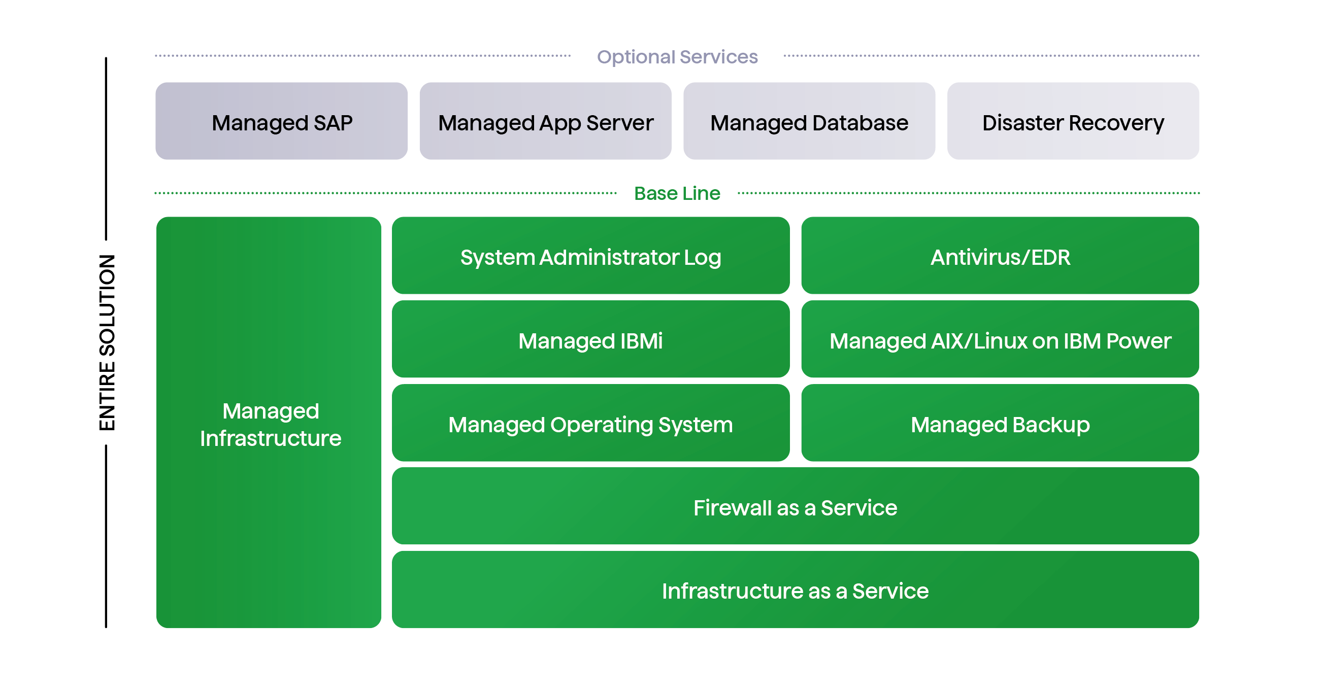 - Managed Services (ManS): servizi specialistici di supporto e gestione per infrastrutture tecnologiche e/o architetture applicative:Mandatori: ManS for Infrastructure, Operating System, IBMi, AIX/Linux on Power, DP Advanced